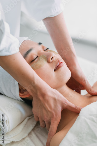 asian, beautician, beautiful, beauty, clean, cleaning, closeup, closed, closeup, cosmetic, cosmetician, cosmetology, dermatology, eye, face, facial, female, massage, natural, neck, patient, spa, therapy, treatment, woman