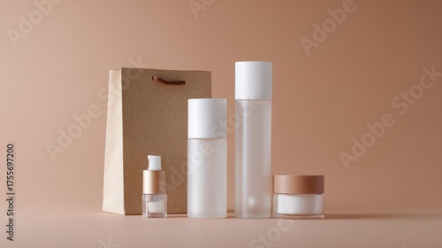 Cosmetic packaging with paper bag modern advertising product photography design concept skincare elegant minimal clean aesthetic professional beauty natural harmony
