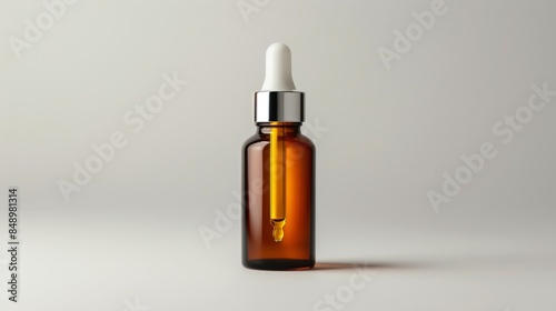 cosmetic serum bottle with dropper on white background
