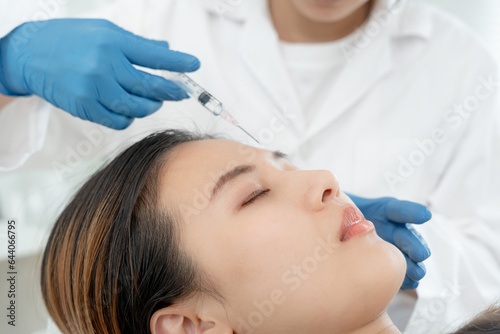 Cosmetic surgery, skin whitening injection, filler injection, Skin reface, beautiful Asian girls receive beauty treatments at beauty clinic, skincare, pore rejuvenation, wrinkle, baby face