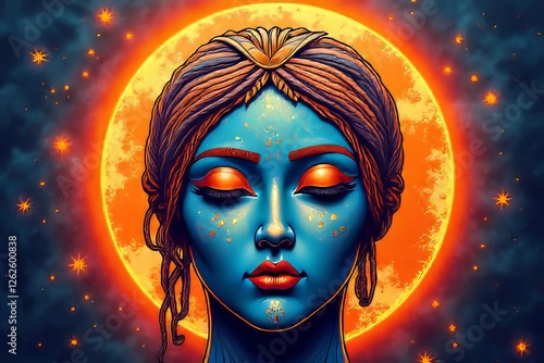 print, illustration, digital artwork, female, colourful, spiritual, poster, decorative, fashion, artistic, drawing, painting, hallucinogen, meditation, yoga, detail, closeup, abstract art