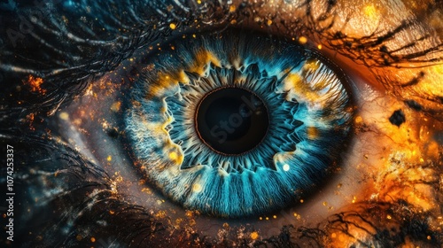 eye, human, pupil, iris, closeup, macro, blue, gold, orange, brown, eyelash, detail, abstract, art, photo, sharpened, texture, depth, beauty, colours, high-coloured, bright, dark, light, sparkle, close, intense, gaze, look, body, vision, seeing, nature, science, up