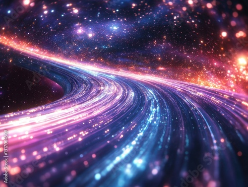 Cosmic highway of shimmering light in a vibrant nebula galaxy with flowing energy and futuristic design