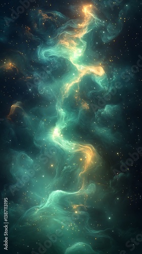 Cosmic Nebula Mobile Wallpaper Luminous Teal & Gold Swirl Against Starry Dark Space | Vertical HD Phone Wallpaper