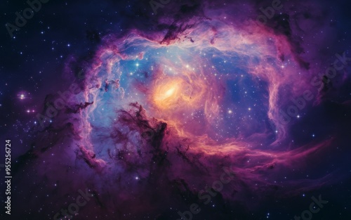 Cosmic nebula. Vibrant hues of purple and pink paint the celestial canvas, as a nebula swirls through the cosmos, surrounded by glittering stars.