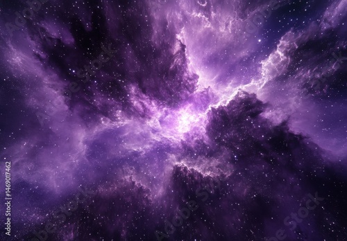 Cosmic Purple Nebula Swirling Gas Clouds and Stars
