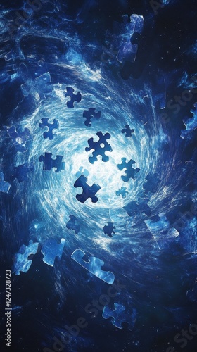 puzzle, piece, galaxy, space, cosmic, swirling, nebula, star, mystery, universe, solution, connection, abstract, blue, dark, light, energy, pattern, design, background, texture, art, image, illustration, graphic, digital, concept, idea, problem, solving, challenge, intricate, complex, enigmatic, profound, wonder, awe, infinite, huge, aethereal, celestial