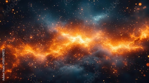 Cosmic supernova bursts with glowing orange and teal particles and smoky edges