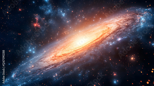 Cosmic Tapestry: The vast expanse of the cosmos unfolds, unveiling a majestic spiral galaxy ablaze with celestial brilliance.