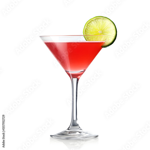 Cosmopolitan cocktail isolated on a white background decorated with a lime wheel. Illustration.