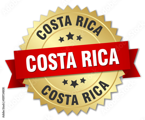 Costa Rica round golden badge with red ribbon