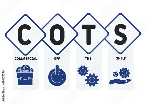 COTS - Commercial Off-the-Shelf acronym. business concept background. vector illustration concept with keywords and icons. lettering illustration with icons for web banner, flyer, landing pag