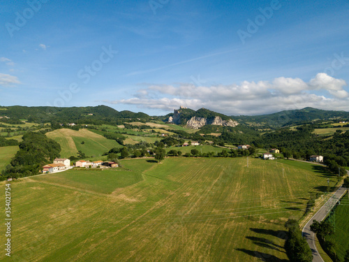 Countryside of Marecchia Valley and in foregrounf the old fortress of San Leo