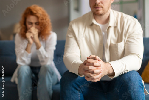 living room, dissatisfaction, support, despair, reconciliation, listening, human relationships, unhappy, argument, emotional, adult, challenged, serious, crisis, heterosexual, forgiveness, upset, depression, couch, tension, conversation, therapy, couple, home, thoughtful, problem, distressed, stress, modern, separation, sorrowful, conflict, marital, european, sofa, anxiety, spouse, troubled, concerned, divorce, communication, estrangement, woman, interior, hand, man, indoor, grievance