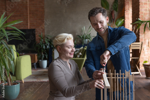 couple, furniture, building, teamwork, help, helping, screwdriver, tool, engagement, connection, partnership, happiness, home, apartment, project, collaboration, warmth, moment, love, togetherness, design, bricolage, skill, new home, man, woman, caucasian, candid, banking, finance, mortgage, loan