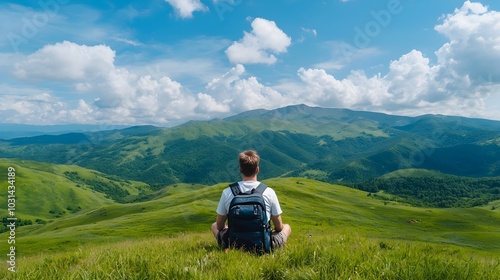 Couple embarking on a scenic drive through the picturesque rolling hills and lush greenery of the peaceful countryside landscape