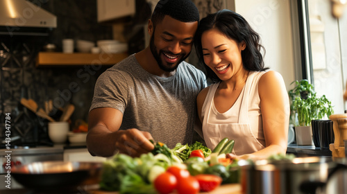 couple, cooking, kitchen, vegetable, fresh, happy, modern, asian woman, human relationships, preparing, food, healthy, lifestyle, together, smiling, indoor, home, family, cheerful, fun, bonding, interaction, chopping, ingredient, culinary, passion, domestic, organic, teamwork, diversity, homelike, loving, relaxed, joyful, life, technology, image, photo, man, man, people, person, generative, ai, male, woman, woman