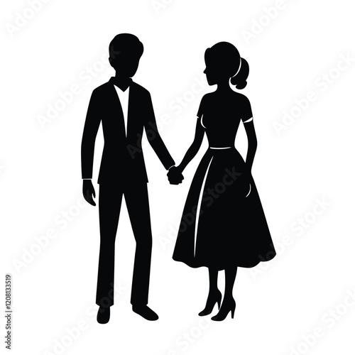 Couple Holding Hands Silhouette Vector Art - Black Design Illustration