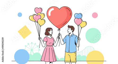Couple Holding Heart Balloons - Love, Romance, Celebration, Valentine's Day