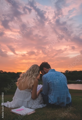 Couple in love enjoying sunset together