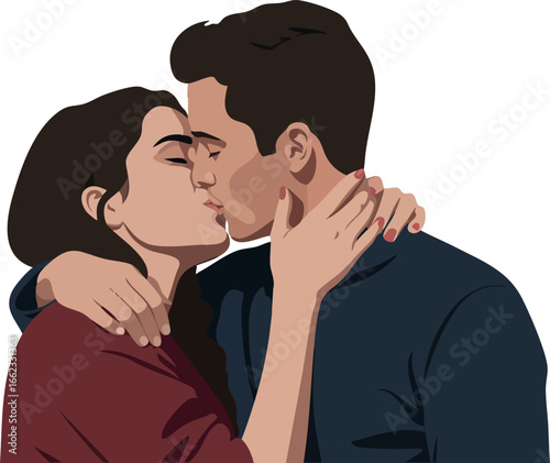 couple, kiss, romance, love, human relationships, hugs, affection, passion, intimacy, people, woman, man, dark hair, casual clothes, gesture, interaction, connection, emotional, together, bonding, happiness, tenderness, oneness, vector, illustration, human, friendship, support, warmth, closeness, communication, partner, mutual, feeling, adult, youth