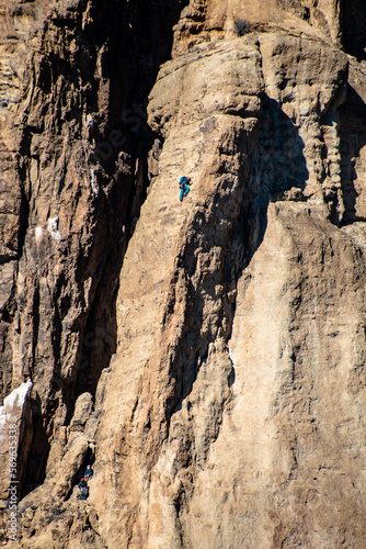 Couple of Mountain Climbers Climbing a Cliff in Smith Rock State Park, OR