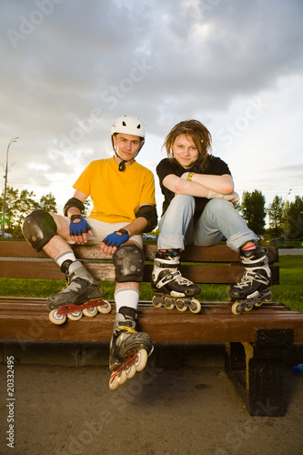 couple, rollerblade, rollerblading, sport, activity, skate, sk8, roller, inline, outdoors, exercising, leisure, summer, woman, people, female, recreational, fun, enjoyment, lifestyle, adult, young, healthy, holiday, weekend, sunday, life, urban, city, well-being, relaxation, background, girl, park, nature, group, happy, talking, have fun, smiling, man