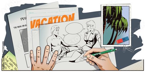 adult, art, background, banner, brand, cartoon, character, comic, concept, creative, design, flier, graphic, halftone, illustration, invitation, modern, people, pop, poster, promotion, retro, signs, style, template, trend, vintage, vector, beauty, woman, girl, female, lady, vacation, travel, sand, happiness, holiday, summer, lifestyle, beach, sea, pool, water, man, male, boy, guy, hero