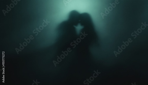 Couple Silhouette Romantic Embrace Foggy Mysterious Background