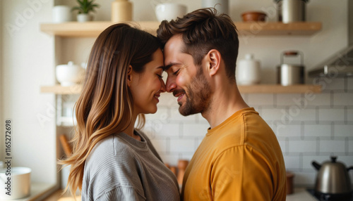 couple, smiling, embracing, kitchen, warmth, love, intimacy, human relationships, modern, home, romance, joy, happiness, togetherness, affection, indoor, cuddling, young adult, bonding, connection, two people, emotional, cosy, lifestyle, casual attire, exploring, comfort, laughter, celebration, light, together, companionship, peaceful, joyful, domestic, smile, memory, cheerful, 2