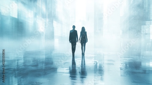 couple, walking, together, romantic, futuristic, partner, oneness, tenderness, serenity, moment, dreamy, vision, harmony, imagination, human relationships, mist, exploration, inspiration, innovation, perspective, atmosphere, fantasy, future, path, creativity, journey, silhouette, feeling, artistic, connection, scenery, ambience, emotion, love, light, technology, modern, abstract, lifestyle, style, design, beauty, adventure, landscape, street, city