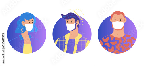 Covid 19 People wearing protective masks avatar gradient man wearing yellow hat and mask