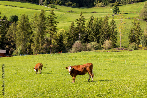 pasture, grass, green, cow, field, graze, mountain, brown, white, forest, landscape, countryside, cattle, meadow, agriculture, animal, rural, natural, nature, summer, farmland, farm animal, grazing, farming, milk, farm, alps, dairy, alpine, herd, dolomite, outdoors, freedom, portrait, europa, closeup, village, background, switzerland, mammal, idylli, fresh, closeup, italy, austria, sky, blue