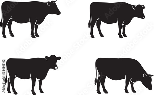 Cow silhouette. Cow vector illustration. Black cow and domestic milk cows. Farm animals isolated vector icons set.