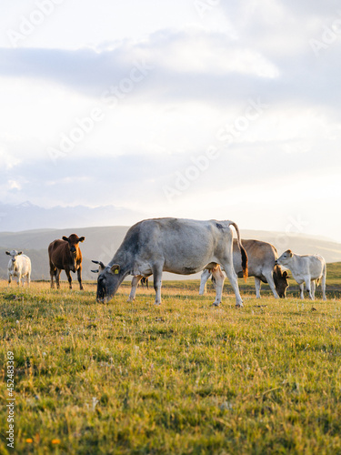 animal, farm, cow, grass, field, nature, landscape, pasture, cattle, meadow, grazing, cow, sky, agriculture, rural, mammal, animal, herd, green, countryside, farm animal, brown, bull, farming