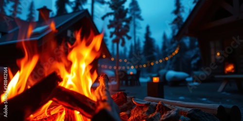 campfire, snowy, forest, evening, cosy, winter, firewood, warmth, glow, serene, peaceful, rustic, candle, holiday, quiet, relaxation, atmospheric, tranquil, nature, retreat, scenic, idylli, leisure, camping, wilderness, fire