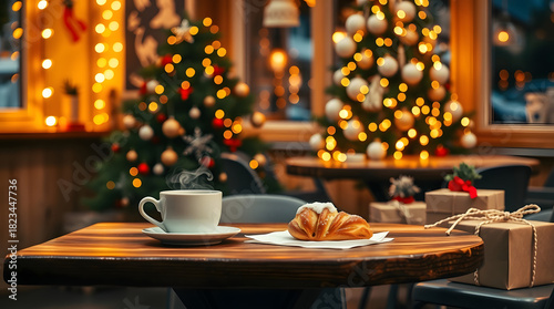 Cozy Christmas Ambiance A Warm Drink and Sweet Pastry Moment