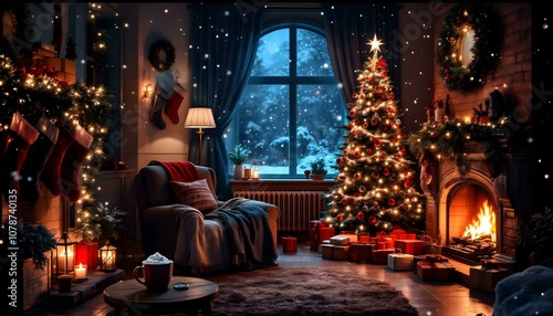 christmas lights, holiday decorations, hot chocolate, holiday spirit, christmas gift, christmas, christmas tree, decoration, tree, holiday, christmas, room, celebration, decoration, light, window, decor