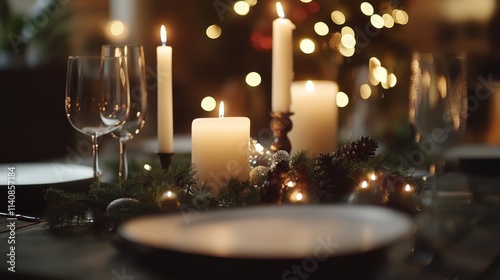 candle, christmas, dinner, table, setting, holiday, festive, cosy, warm, romantic, celebration, light, wine, goggles, decor, pine, cone, ornament, elegant, ambience, home, rustic, evening, family, gathering, joy, peace, serenity, togetherness, food, drink, tree, bokeh, warmth, glow, fireplace, winter, magic, eve, christmas