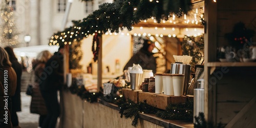 Cozy Christmas Market Stall with Holiday Lights and Decorations