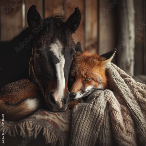Cozy Companions: Horse and Fox Share Blanket