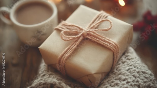 Cozy Gift with Coffee on a Rustic Table Setting