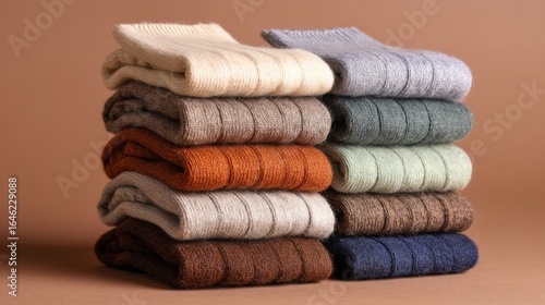 sock, knitted, warm, cosy, colourful, fashion, textile, accessory, stack, brown, cream, blue, green, orange, grey, pattern, fabric, traditional, indoor, relaxation, style, comfortable, autumn, winter, home, neutral, outfit, trendy, design, casual attire, lifestyle, craft, good, wool, material, presentation, fashion accessories, relaxed, soft, leisure, aesthetic, collection