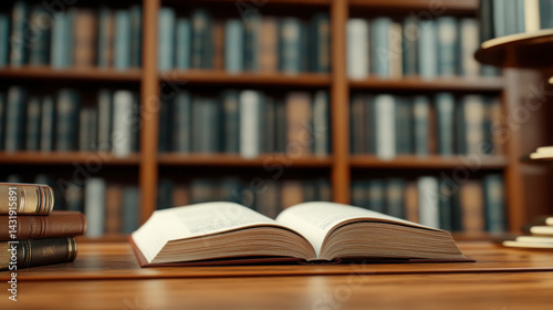 Cozy library atmosphere with open book and shelves for reading inspiration