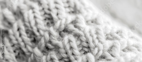 Cozy light grey knitted cotton texture fabric ideal for autumn winter themed backgrounds and minimalist design with ample copyspace for text