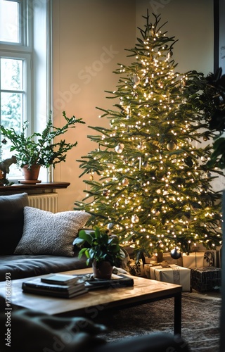 christmas, tree, living, room, cosy, winter, evening, light, decoration, indoor, plant, home, warm, atmosphere, furniture, gift, holiday, seasonal, decor, relaxation, family, gathering, joy, festive, couch, wooden, table, cushion, ornament, greenery, comfort, tranquil
