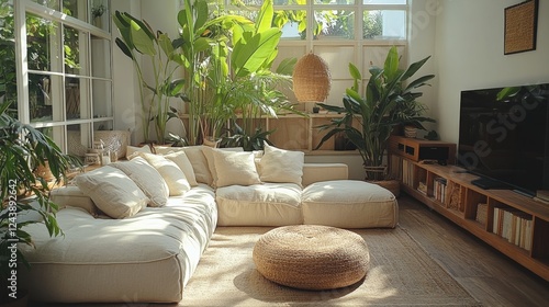 Cozy living room with indoor plants bright space home decor inviting atmosphere