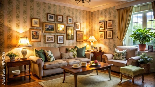 room, elderly, person, family, photograph, comfortable, furnishing, comforter, pillow, soothing, colours, asian, wallpaper, background, nostalgia, warmth, functionality, natural, texture, gentle, subtile, sophistication, calming, inviting, intimate, harmonious, soft, muted, pattern, fabric, upholstery, decoration, ornament