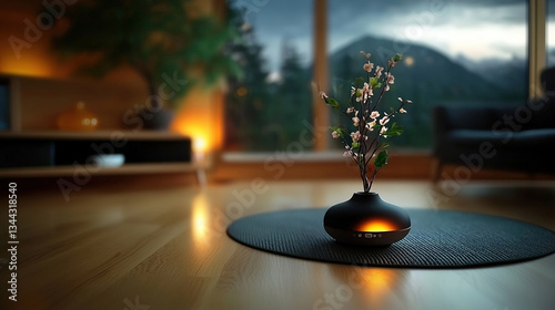 home, interior, modern, design, living, room, decor, cosy, warm, light, natural, view, mountain, tree, flower, calm, peaceful, elegant, stylish, wood, floor, vase, plant, ambience, relaxing, comfort, serenity, nature, lighting, space, simplicity, sophistication, relaxation, aesthetic, minimalist
