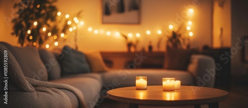 Cozy modern interior of a stylish apartment living room featuring minimalist decor and warm lighting